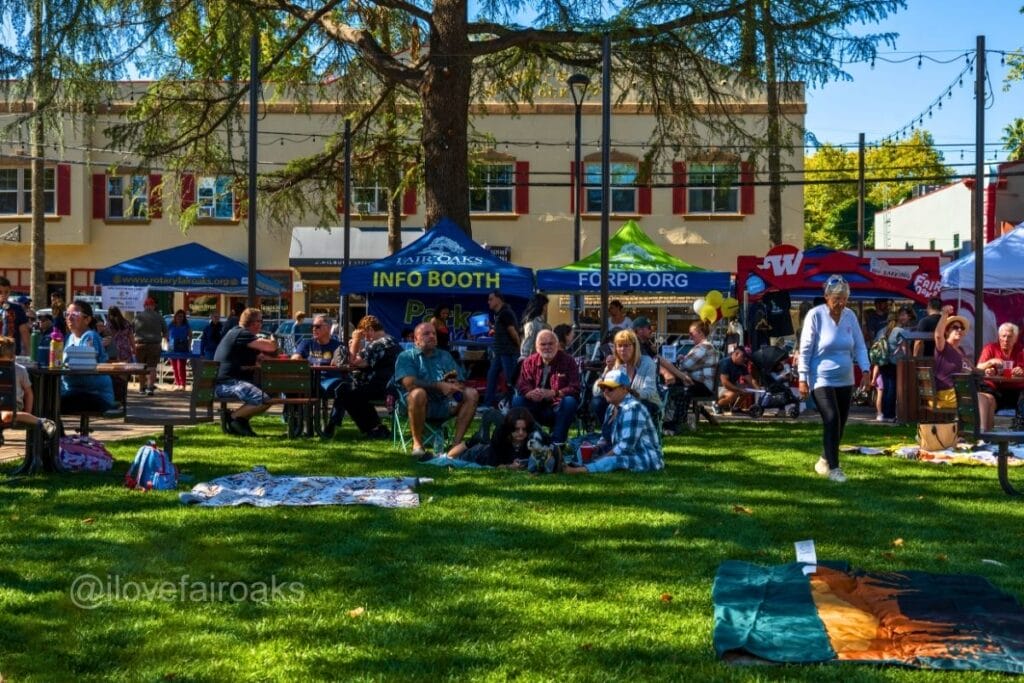 The Village Plaza was full of life. The band Lo-Fi Lowdown played live, filling the air with music and laughter. The Rotary Club of Fair Oaks, Rich Desmond, I Love Fair Oaks, Weekender Magazine, and the Fair Oaks Recreation and Park District all had booths. The Rotary Club was serving beer and wine, and it made for a perfect Sunday afternoon.